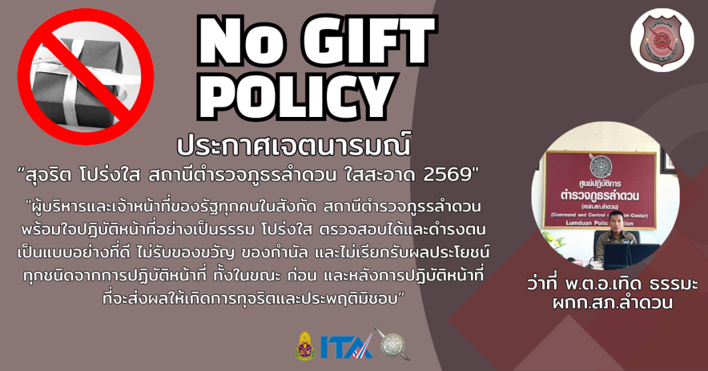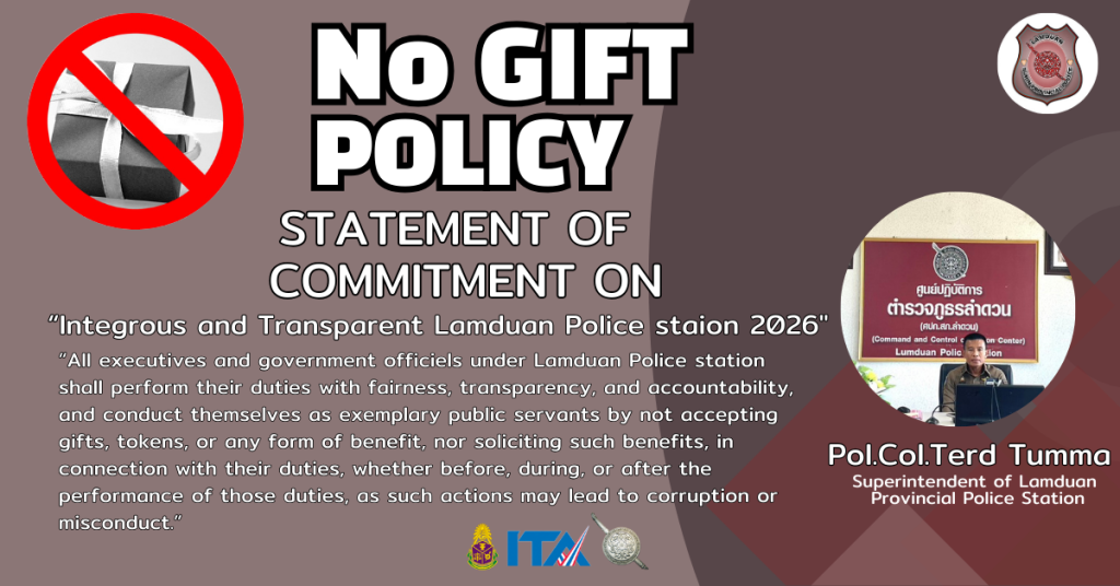 สถานตำรวจภูธรลำดวน ประกาศเจตนารมณ์ no gift policy