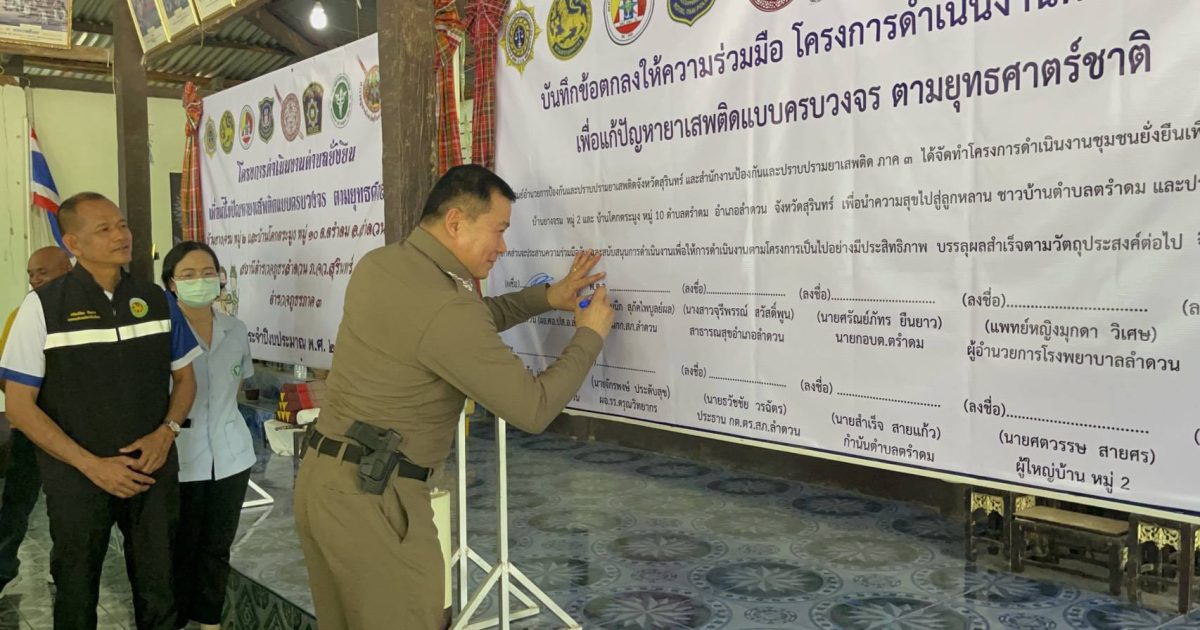 โดยมีนายฐวัฒน์ ช่วยชูวงษ์ นายอำเภอลำดวน เป็นประธานในพิธี พร้อมทั้งฝ่ายปกครองอำเภอลำดวน, ผอ.โรงพยาบาลลำดวน, ผอ.โรงเรียนดรุณวิทยากร, ผู้แทน สาธารณสุขอำเภอลำดวน, นายก อบต.ตรำดม , ผู้แทน ผอ.รพ.สต.ตรำดม กำนัน ผู้ใหญ่บ้าน ผู้นำชุมชน อสม. และประชาชน เข้าร่วมในโครงการฯ ณ ศาลาประชาคมบ้านยางจรม หมู่ 2 ตำบลตรำดม อำเภอลำดวน จังหวัดสุรินทร์