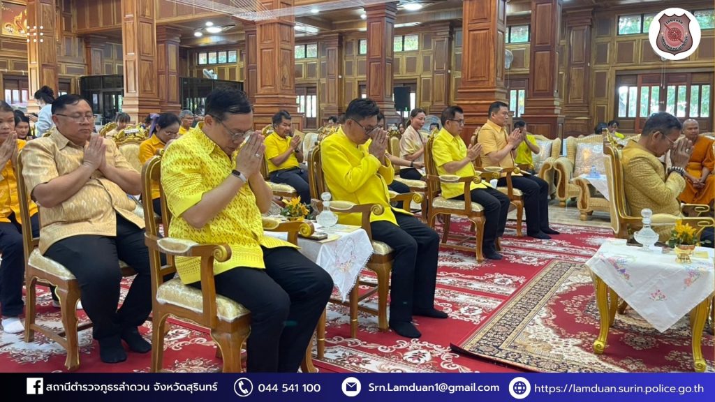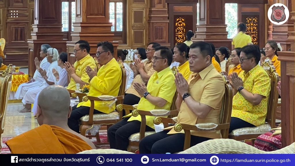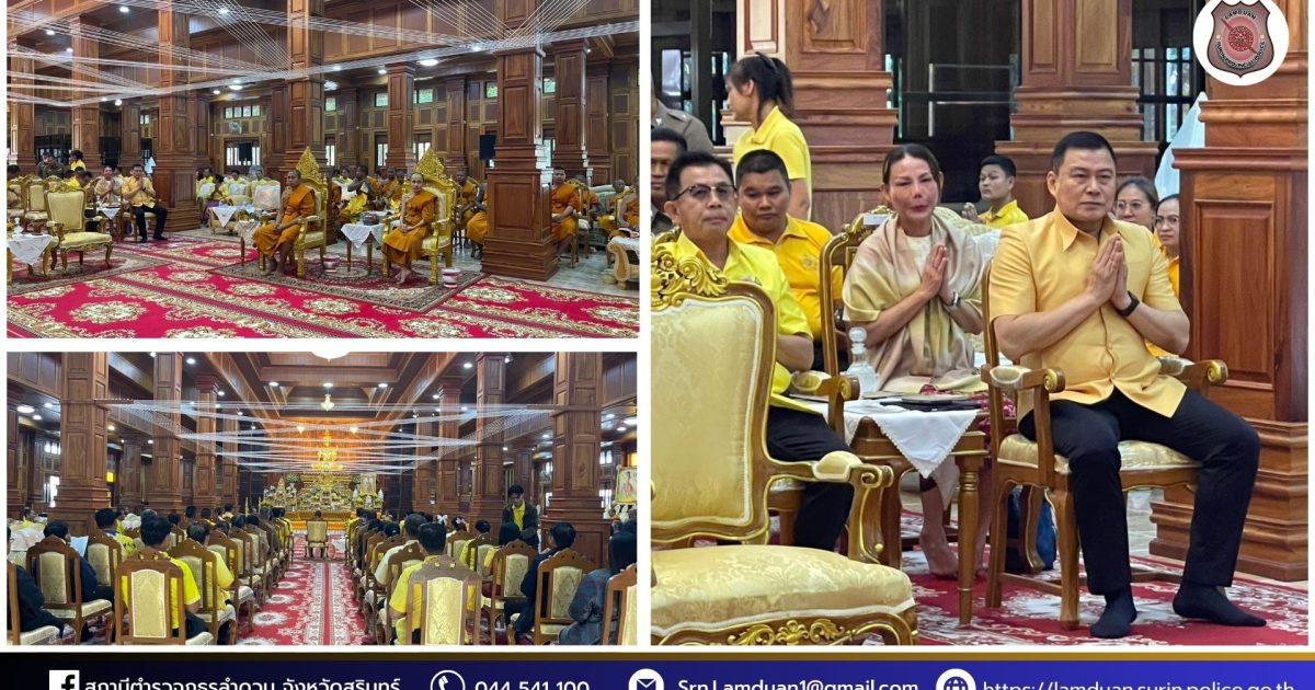 วันที่ 28 ม.ค.68 เวลา 14.00 น. พล.ต.ต.สุคนธ์ ศรีอรุณ ผบก.ภ.จว.สุรินทร์ ได้มอบหมายให้ พ.ต.อ.สมนึก สุภัคไพบูลย์ผล ผกก.สภ.ลำดวน พร้อมด้วยข้าราชการตำรวจ สภ.ลำดวน ได้อำนวยความสะดวกด้านการจราจร/รักษาความสงบเรียบร้อย และร่วม โดยจังหวัดสุรินทร์และคณะสงฆ์จังหวัดสุรินทร์ ในวันอังคารที่ 28 มกราคม 2568 เวลา 14.00 น. ณ วัดสุวรรณรัตน์โพธิยาราม ตำบลลำดวน อำเภอลำดวน จังหวัดสุรินทร์
