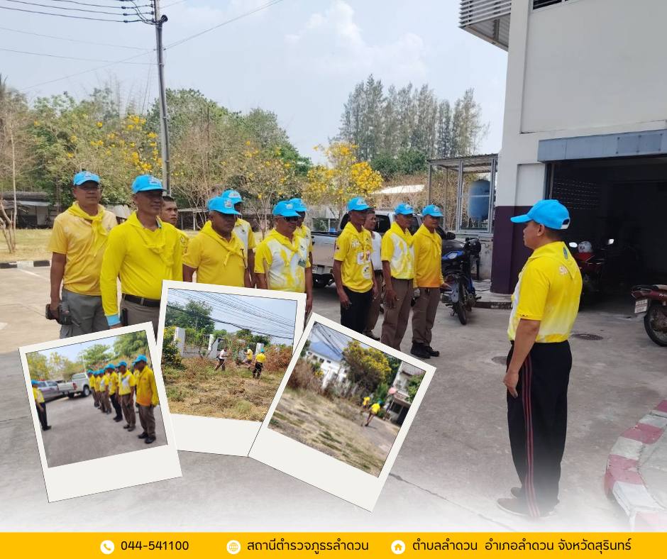 ข้าราชการตำรวจ สภ.ลำดวน ทุกนาย ร่วมกิจกรรมจิตอาสาพัฒนา ณ บริเวณรอบอาคารที่ทำการ เมื่อวันพุธที่ 26 มี.ค.68 เวลา 14.00 น. ชุดจิตอาสาพระราชทาน 904 วปร. : (เสื้อสีเหลือง กางเกงสีดำ สวมหมวก ผ้าพันคอ ป้ายชื่อ)